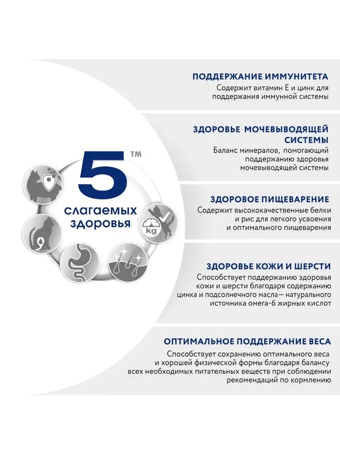 В рационе PERFECT FIT™ для стерилизованных кошек мы учли потребности организма кошки, прошедшей стерилизацию. Поддерживает здоровье мочевыводящей системы у стерилизованных кошек, подверженных повышенному риску развития мочекаменной болезни. Помогает поддерживать здоровый вес благодаря сниженному содержанию жиров и рекомендованному оптимальному размеру порции. Поддерживает здоровый обмен веществ после стерилизации благодаря содержанию всех необходимых питательных веществ
