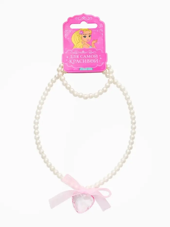 Бусины в белом оттенке создают ощущение лёгкости и аккуратности, а розовый бант и подвеска в форме сердца добавляют мягкий акцент и делают украшение по-настоящему детским и трогательным. Благодаря продуманному размеру элементы удобно сидят и не мешают во время активных игр.