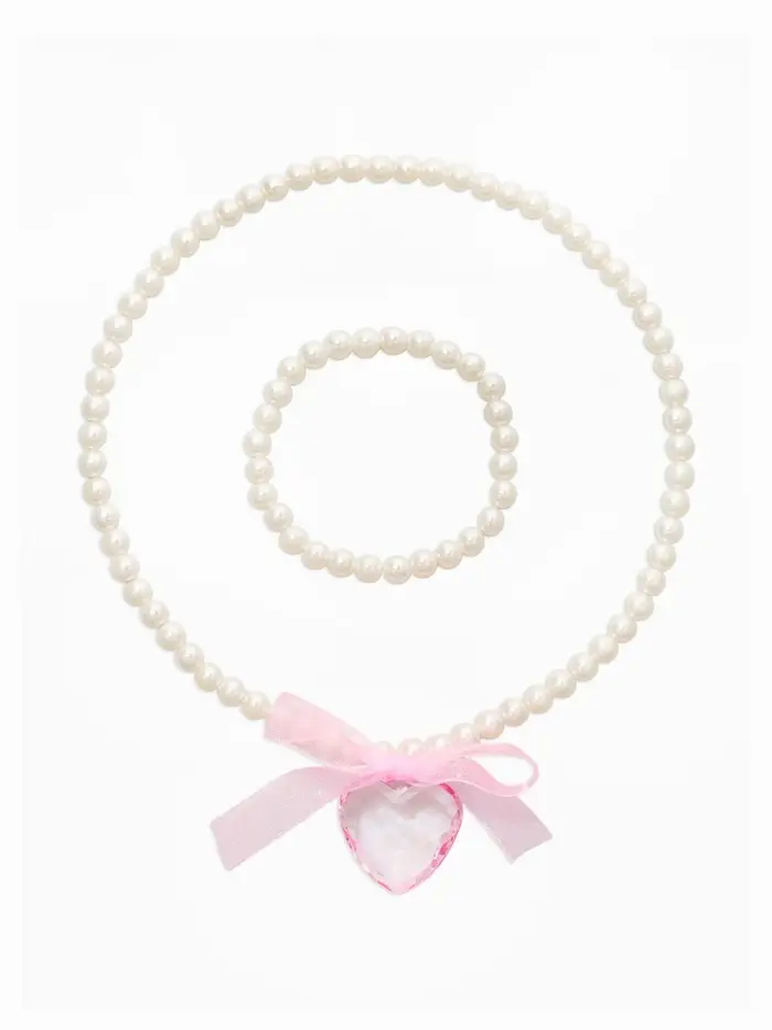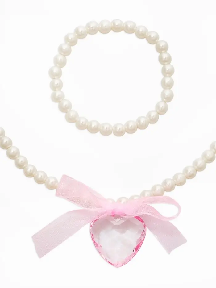 Набор детских украшений «Выбражулька. Сердце, бант», 2 предмета: бусы 35 см, браслет, d=5.5 см, белый, розовый