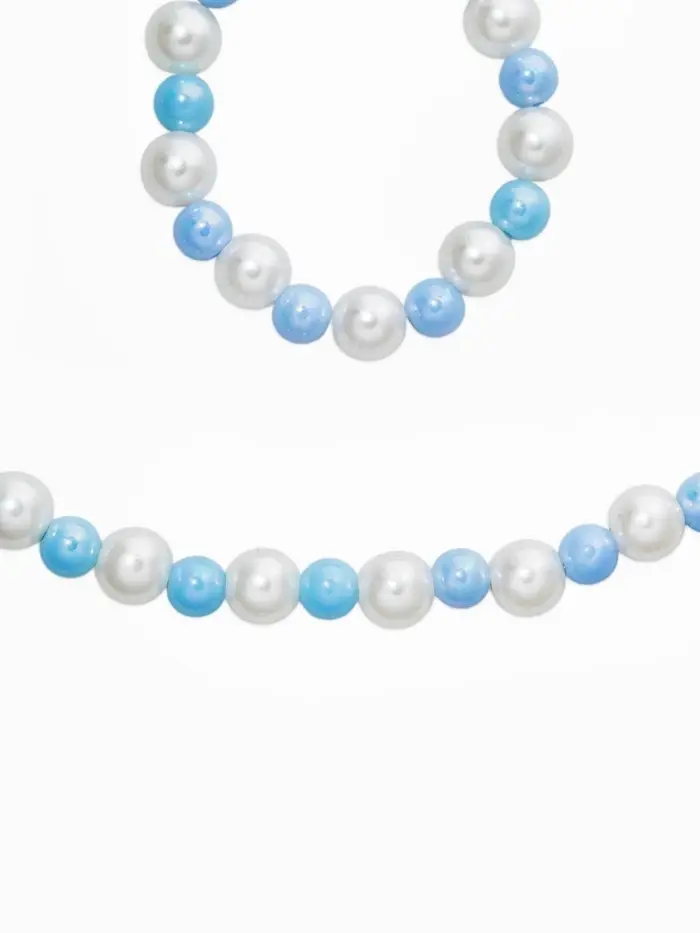 Лёгкое сочетание нежных оттенков и классической формы создаёт украшения, которые сразу привлекают внимание и дарят ощущение праздника. Набор с аккуратными бусинами в белых и голубых тонах отлично дополняет образ маленькой модницы, добавляя ему изящества и игривости.