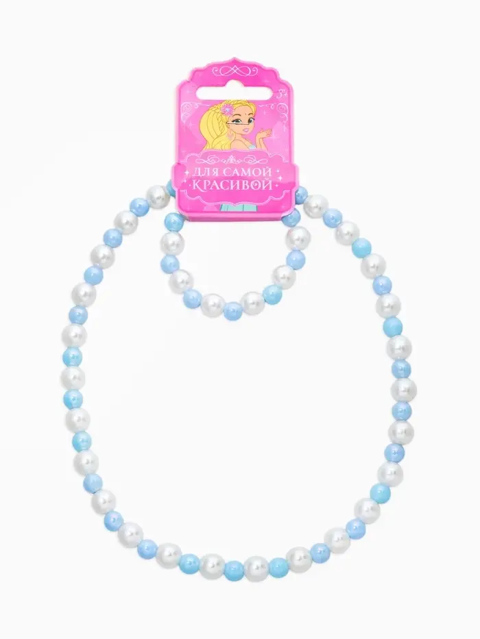 Набор детских украшений «Выбражулька. Жемчуг», 2 предмета: бусы 35 см, браслет, d=6 см, белый, голубой