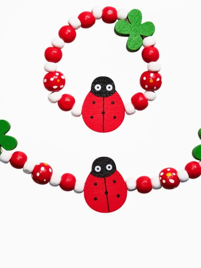 - Продуманный комплект: в набор входят бусы и браслет — готовое решение для стильного детского образа.