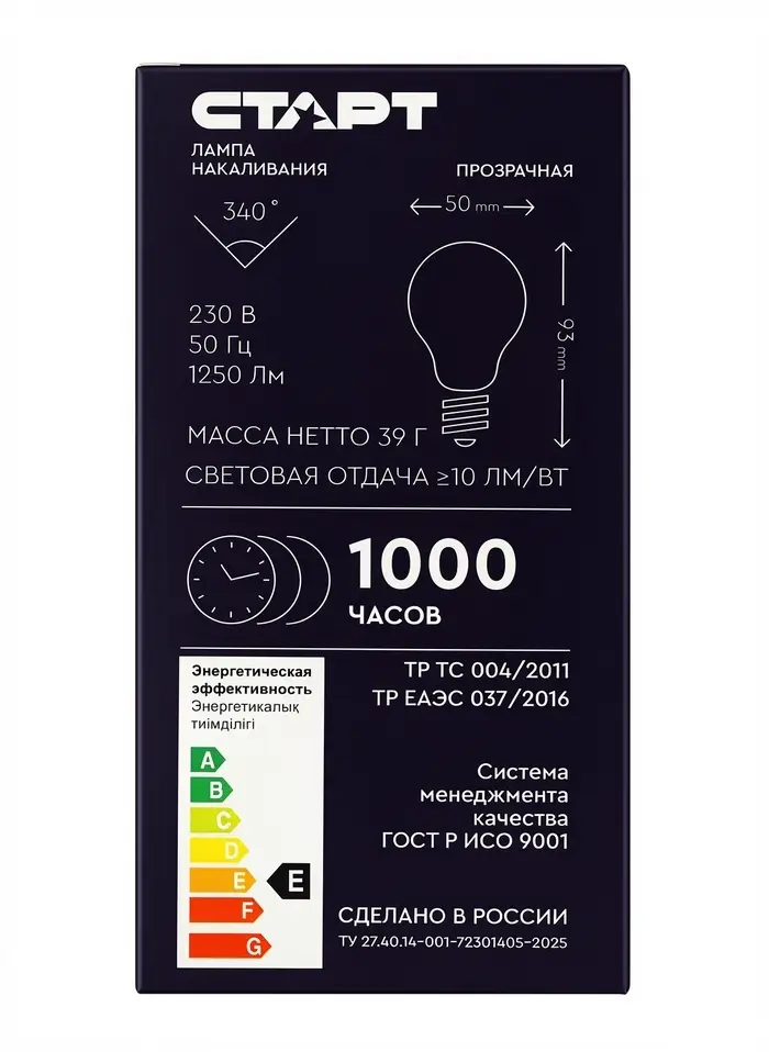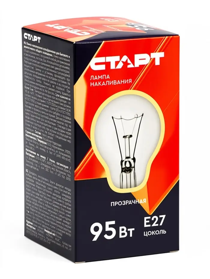 Лампа накаливания СТАРТ, Б, Е27, 95Вт, 230В