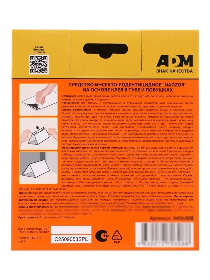 Клеевая ловушка для пищевой моли «Домик», 2 шт/уп., Nadzor