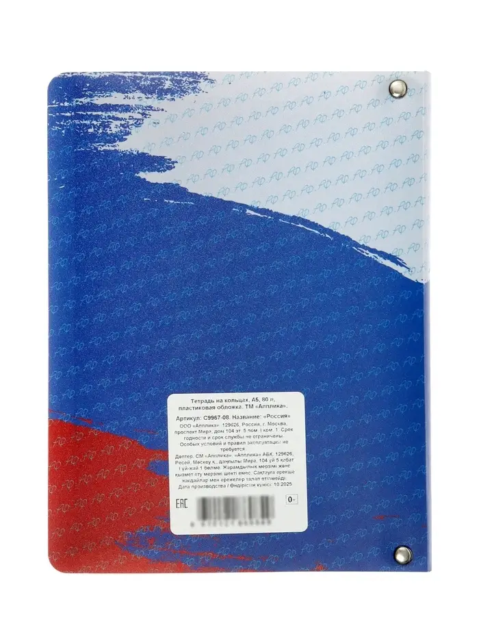 Тетрадь на кольцах A5 80л кл "Россия", пласт обл, вырубка под кольца, сменный блок офсет