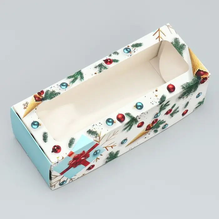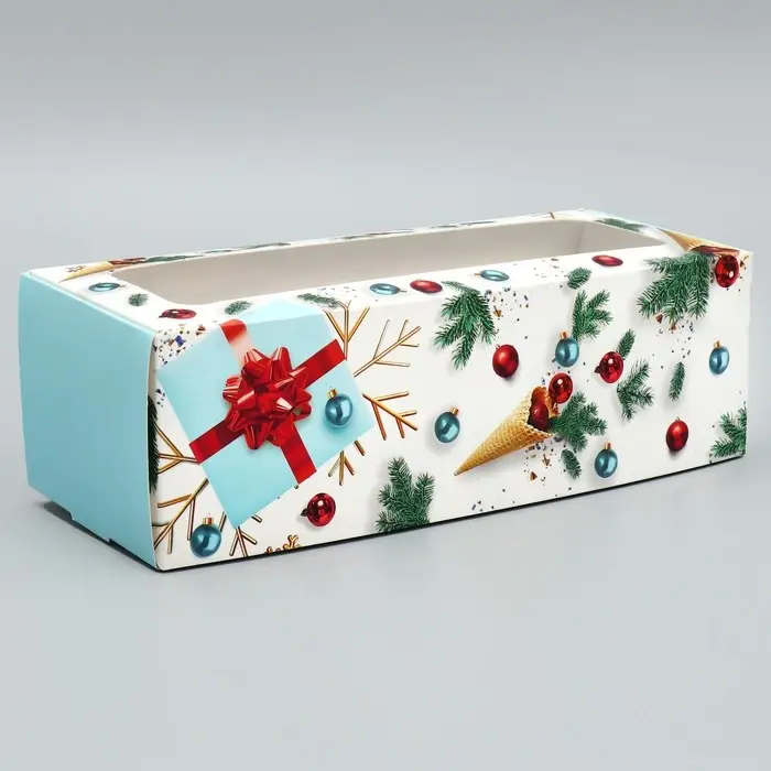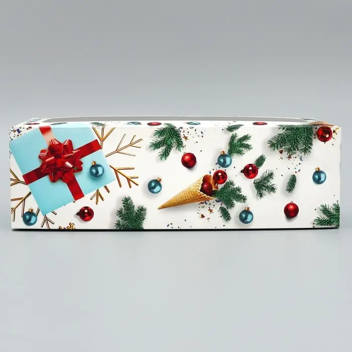 Коробка для кондитерских изделий с окном «Новогодняя», 26 х 10 х 8 см
