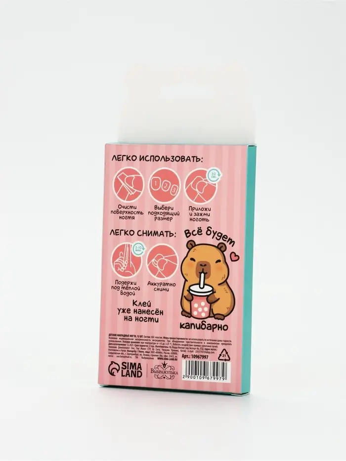 Детские накладные ногти «Капибара», 12 шт.