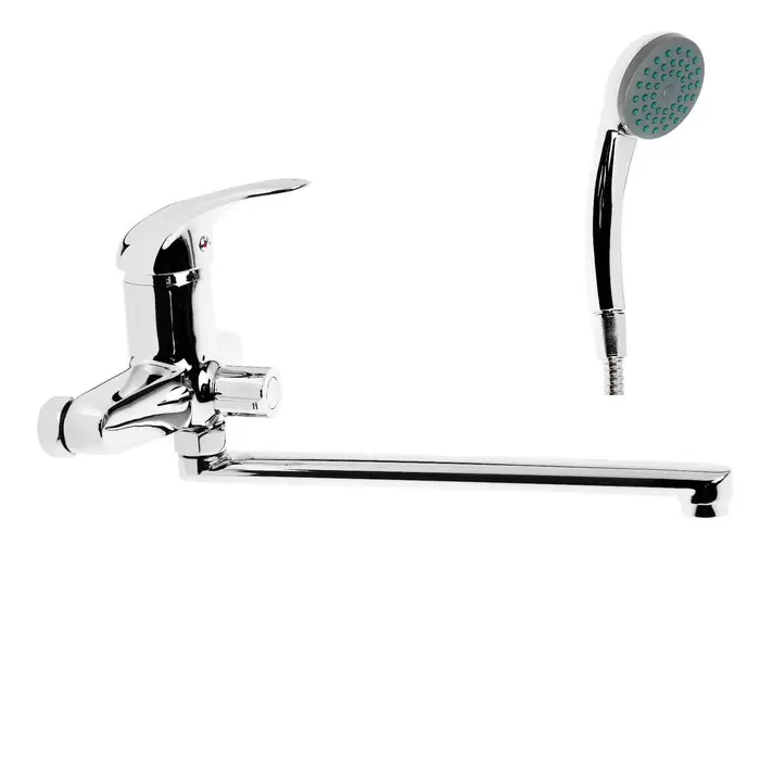 Смеситель для ванны Accoona A7140, однорычажный, излив 300 мм, с душевым набором, хром