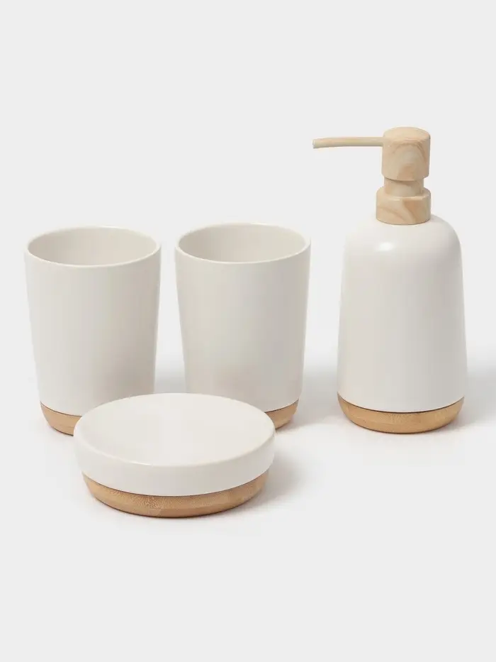 Аксессуары для ванной SAVANNA Monro, 4 предмета, мыльница, дозатор для мыла 450 мл, стакан, баночка, белые