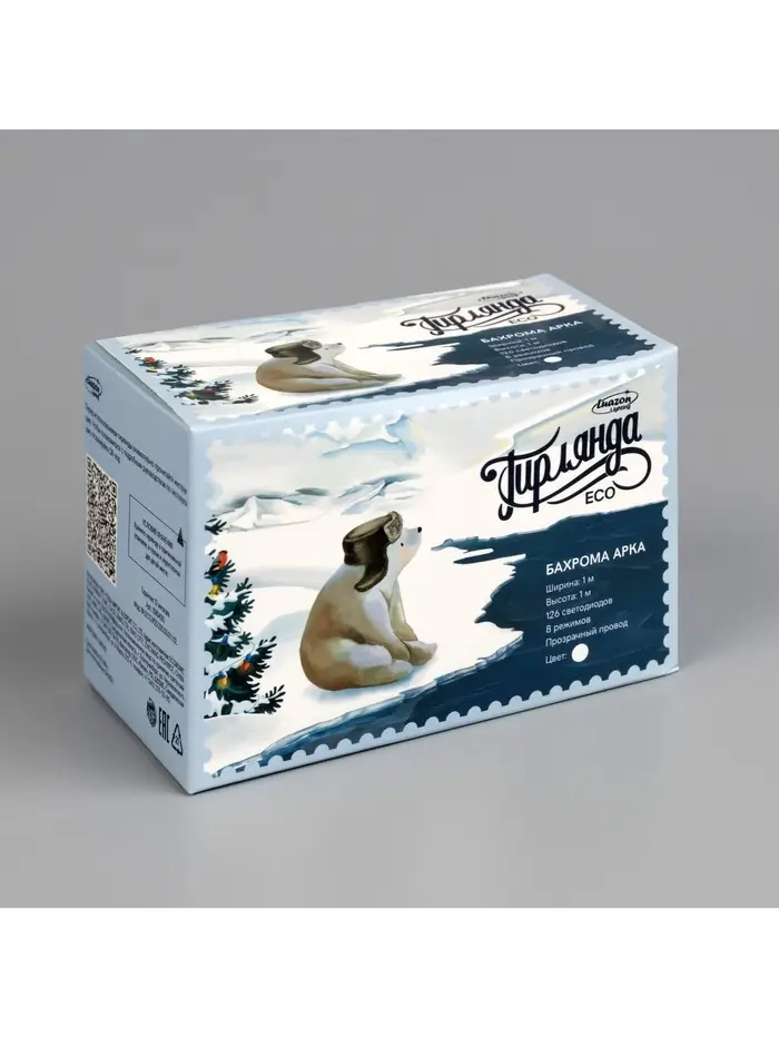 Гирлянда «Бахрома-арка» 1×1 м, IP20, прозрачная нить, 126 LED, свечение белое, 8 режимов, 220 В