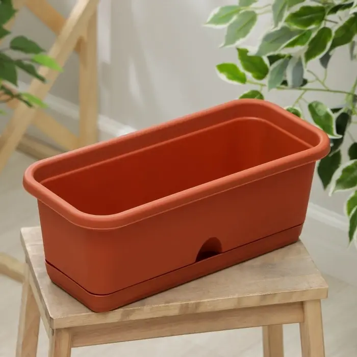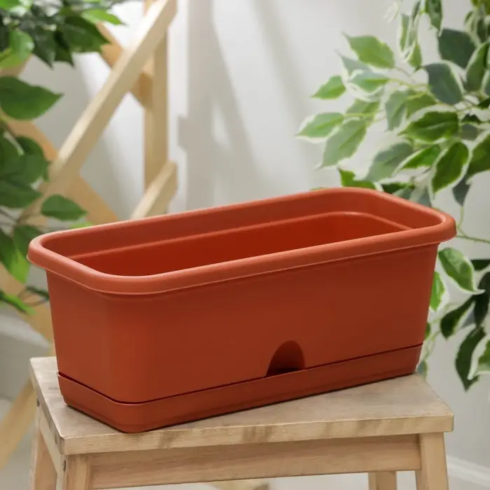 Ящик для цветов балконный с поддоном, 40 см, терракотовый