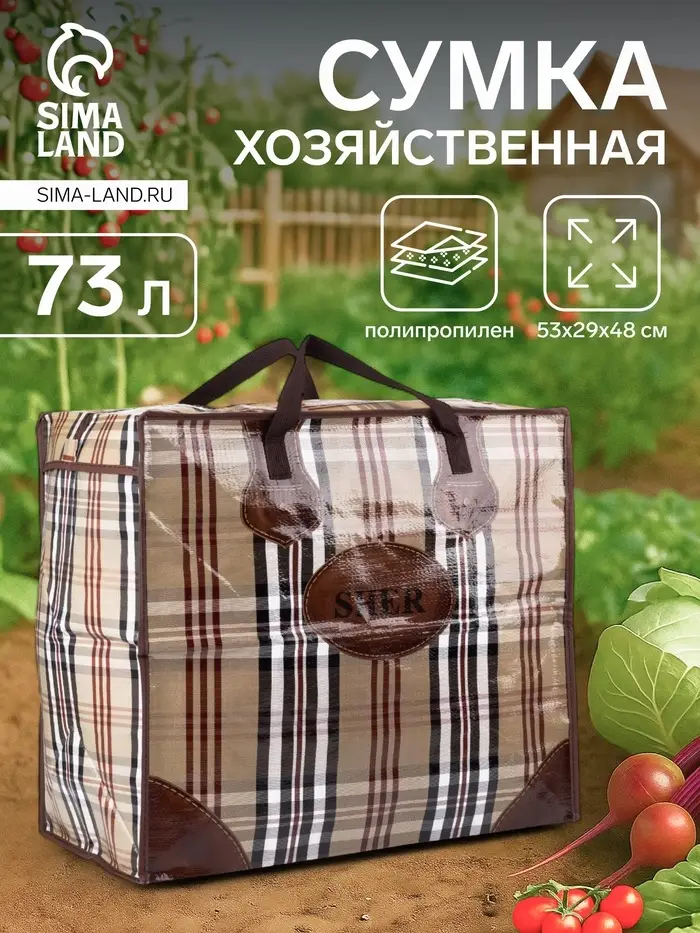 Сумка хозяйственная SHER на молнии, 73 л, 53×29×48 см, бежевая