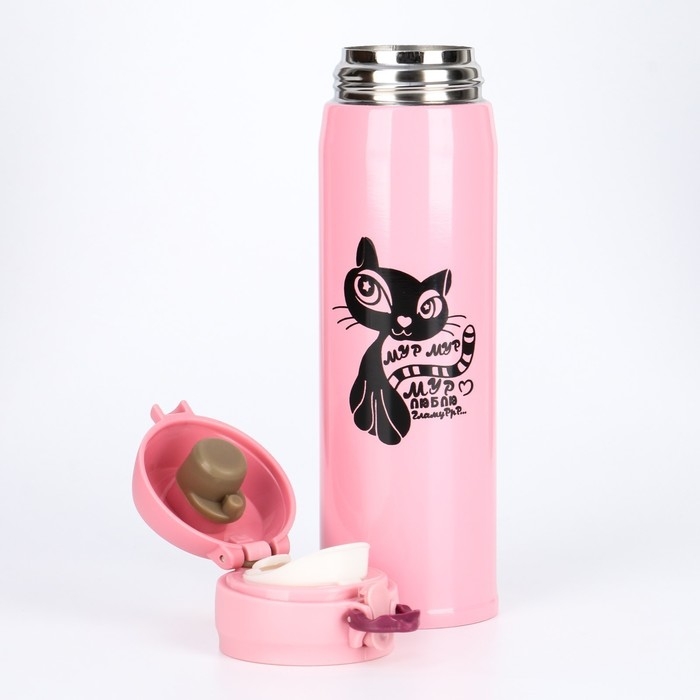Термос, 420 мл, Топ "Мур-мур люблю гламур", сохраняет тепло 8 ч