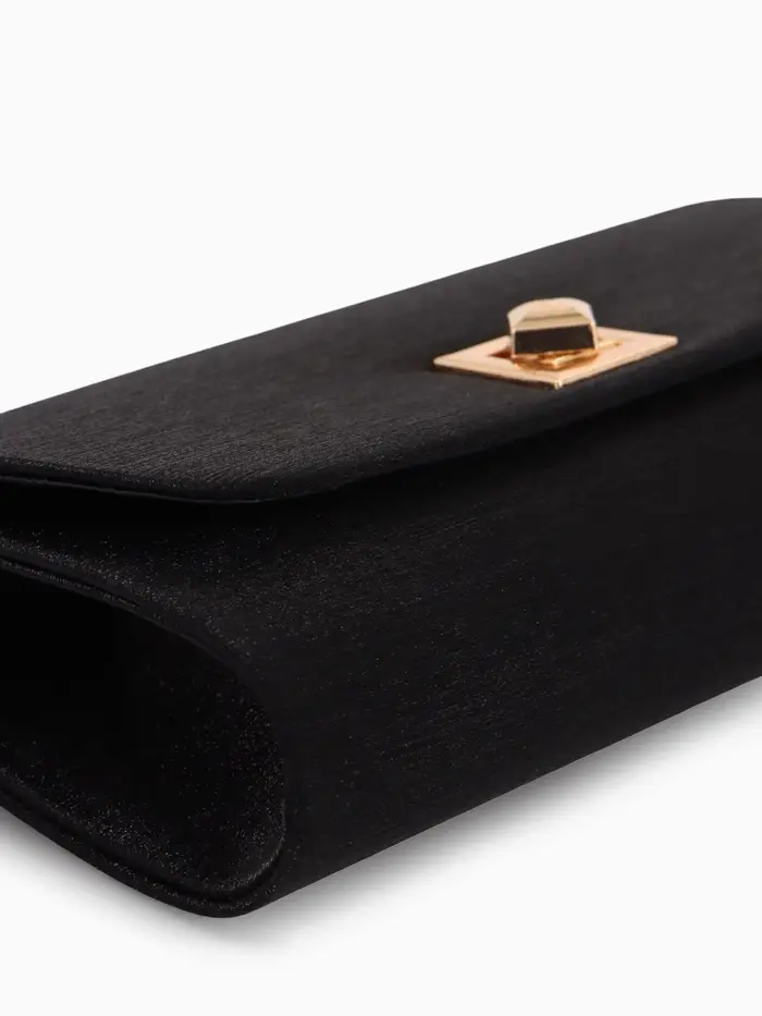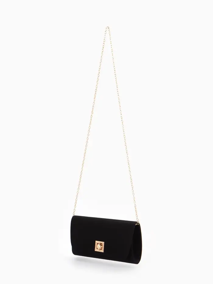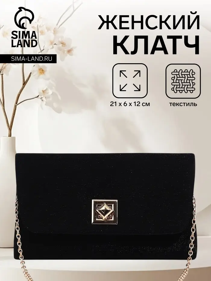 Сумка-клатч женская вечерняя на клапане, на длинной цепочке, однотонная, чёрная