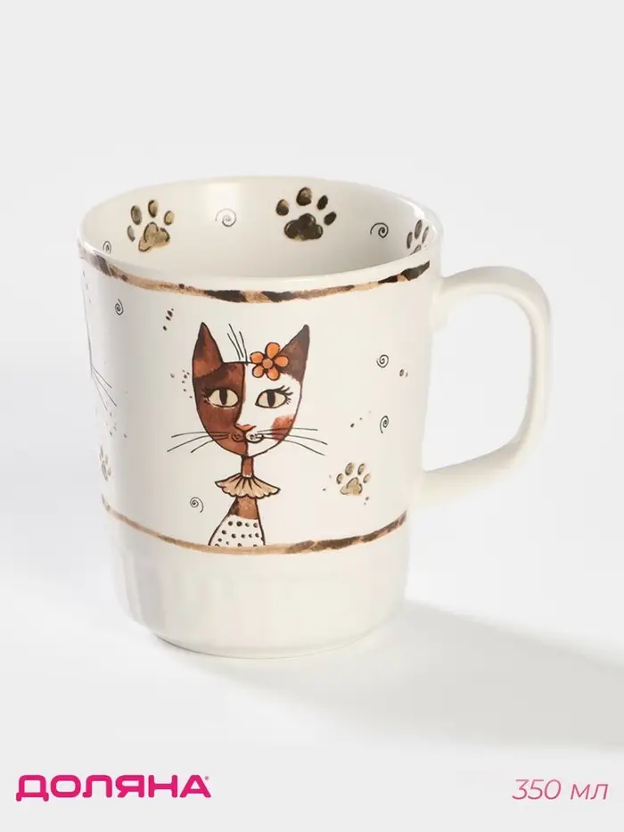 Кружка Доляна «Коты-аристократы», 350 мл, фарфор, белая