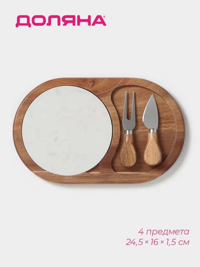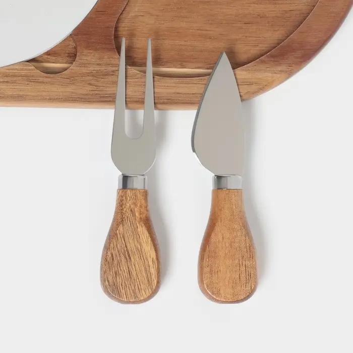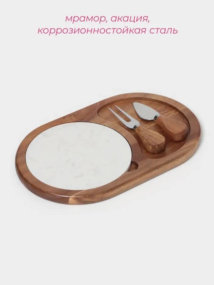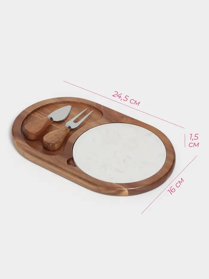 Набор для подачи сыра «Мрамор», 2 ножа, доска, 24.5×16×1.5 см, акация
