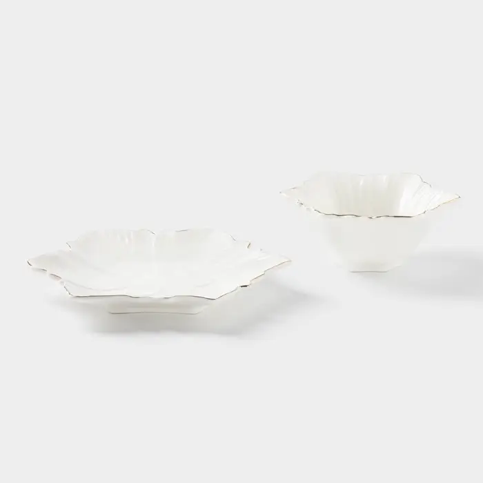 Набор керамических салатников с рельефным узором и золотой отводкой — это стильное решение для сервировки праздничных столов, особенно к 8 Марта. В комплект входят два фигурных блюда объемом 250 мл и 500 мл, которые отлично подходят для подачи салатов, закусок или десертов. Их белый цвет и оригинальный дизайн создают атмосферу уюта и праздничности.