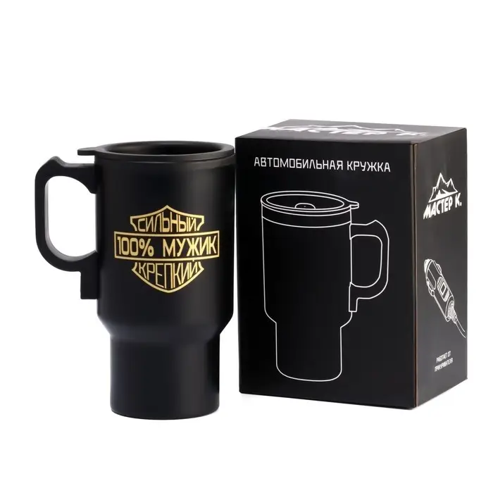 Термокружка автомобильная, 450 мл, «100 % мужик», сохраняет тепло 4 ч, 12×17 см