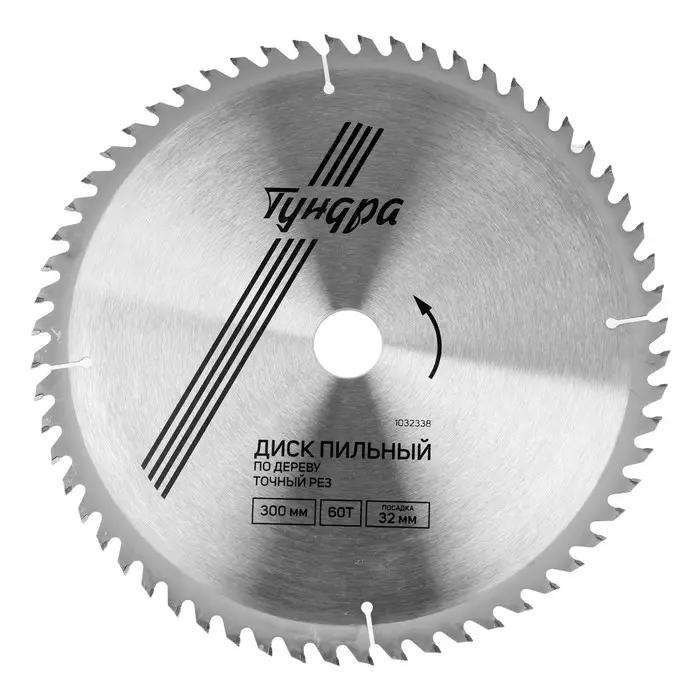 Диск пильный по дереву ТУНДРА, точный рез, 300×32 мм (кольца на 22.20.16), 60 зубьев