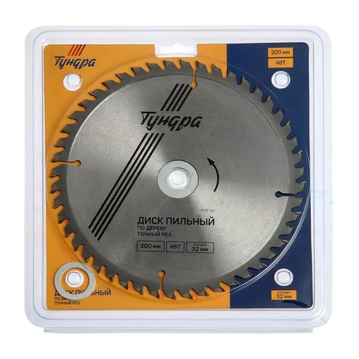 Диск пильный по дереву ТУНДРА, точный рез, 200×32 мм (кольца на 22,20,16), 48 зубьев