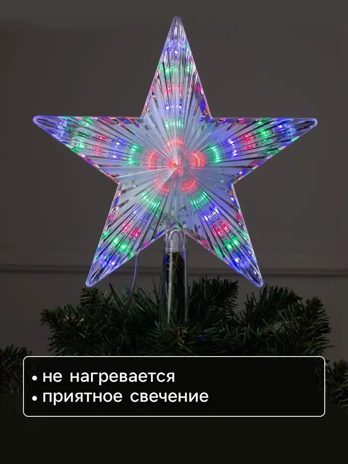 Яркая звезда на верхушке – главное украшение новогодней ёлки! Пусть этот классический элемент декора засияет по-новому! Работающая от сети 240V, светящаяся звезда-верхушка станет идеальным завершающим штрихом в убранстве вашей ёлки. Традиционная красная или под цвет игрушек, таинственная с мягким светом или яркая, переливающаяся – решать только вам!