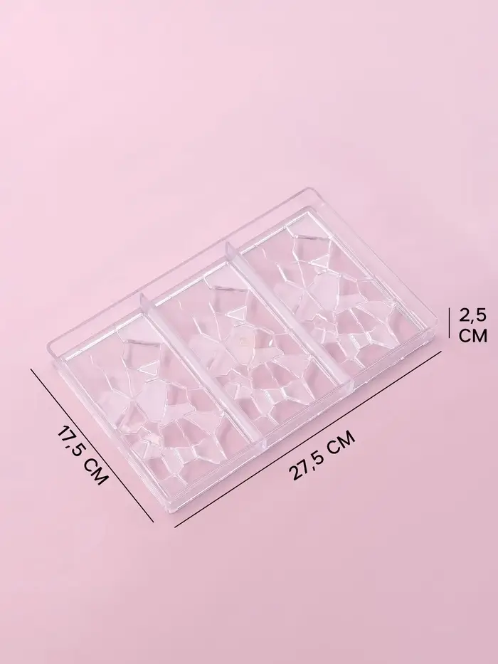 Форма для шоколада KONFINETTA «Сплит», пластик, 27.5×17.5×2.5 см, 3 ячейки 15.3×7.5×0.8 см, прозрачная