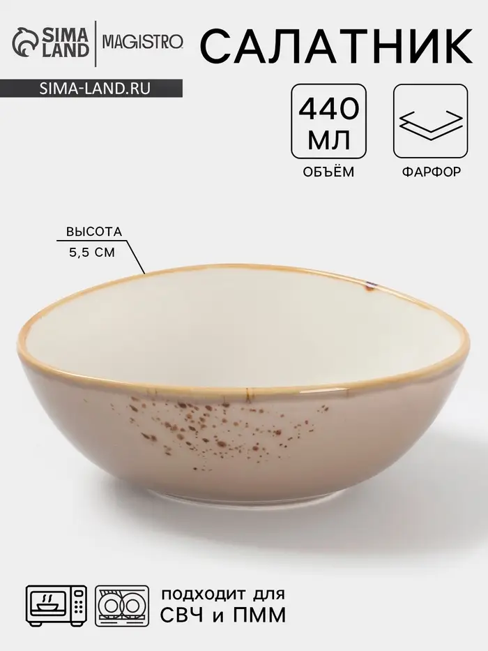 Салатник Magistro «Церера», 440 мл, 15.3×13 см, фарфор, коричневый