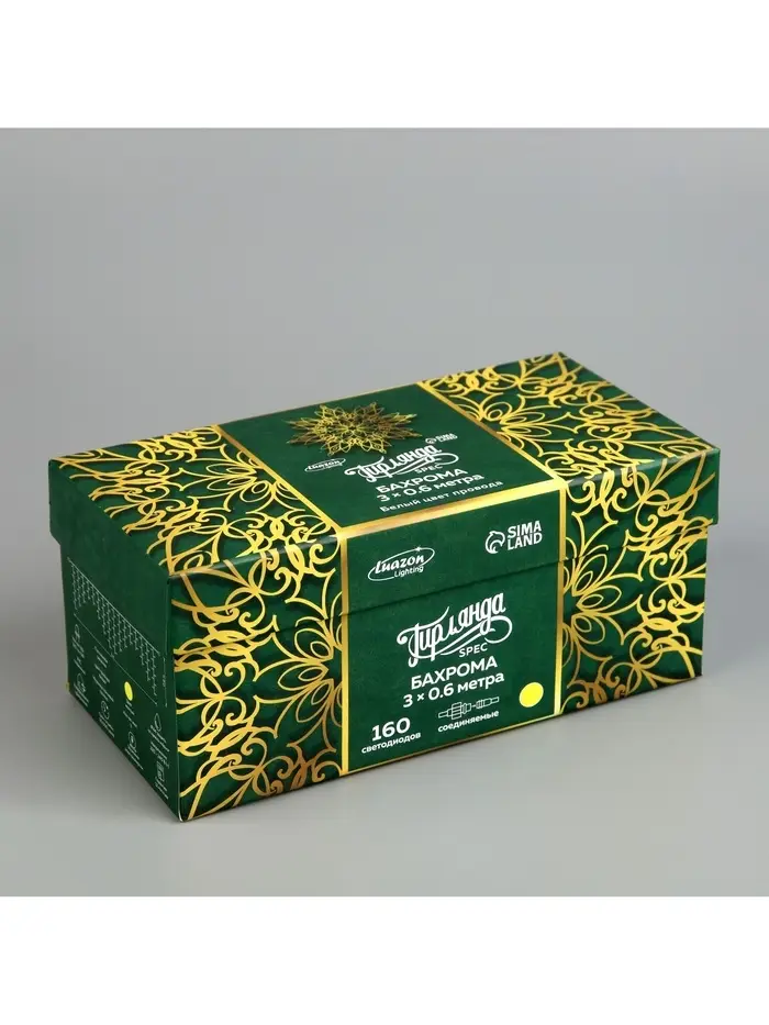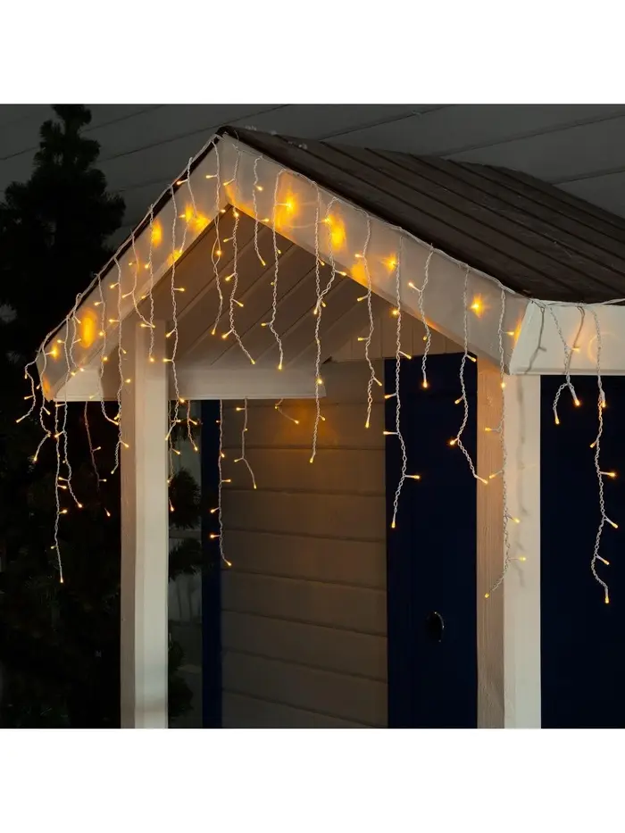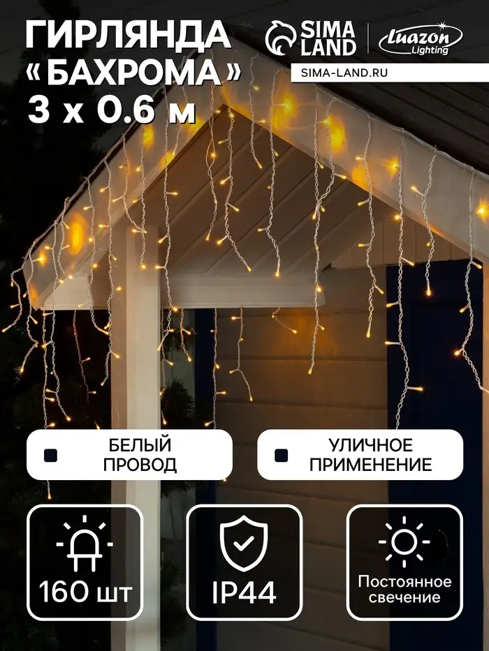 Гирлянда «Бахрома» 3×0.6 м, IP44, УМС, белая нить, 160 LED, свечение жёлтое, 220 В