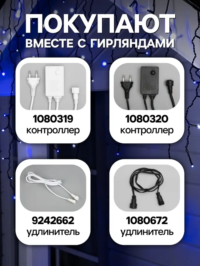 Гирлянда «Сосульки» 2.5×0.5 м, IP65, прозрачная нить, 288 LED, свечение синее с эффектом стекания, 12 В