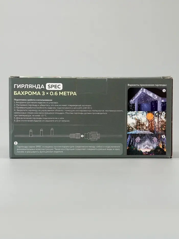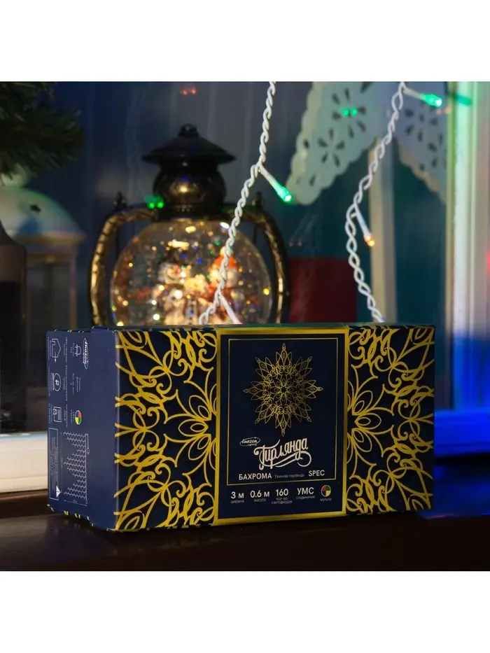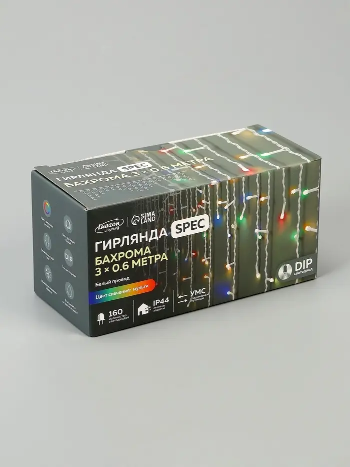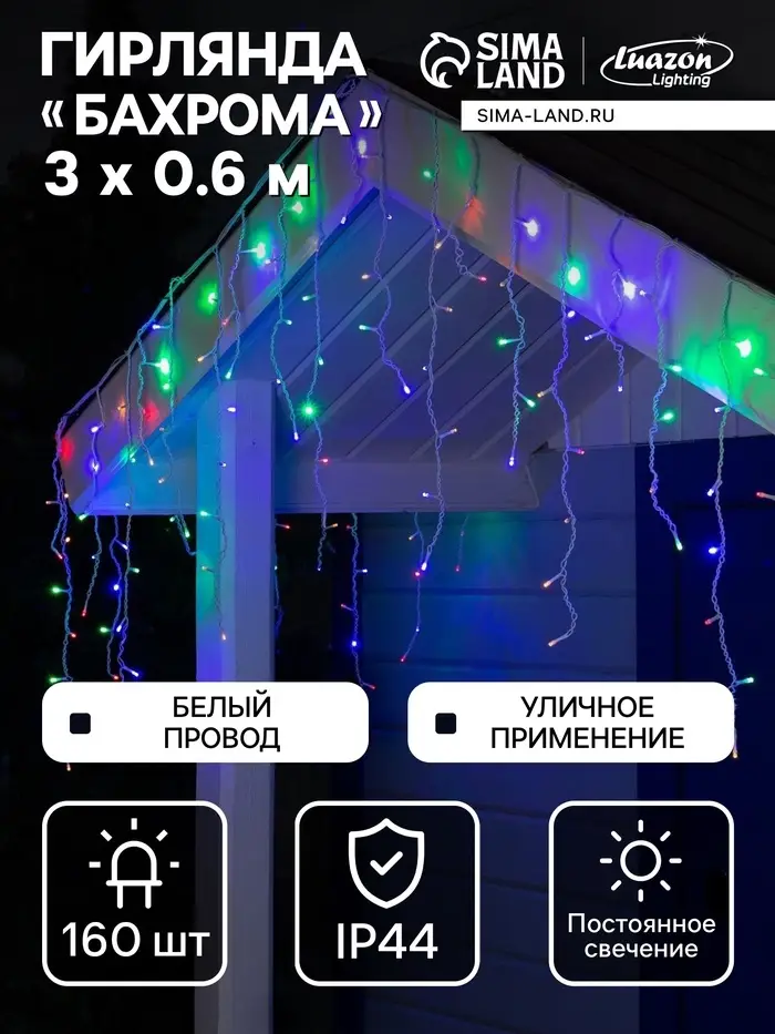 Гирлянда «Бахрома» 3×0.6 м, IP44, УМС, белая нить, 160 LED, свечение мульти, 220 В