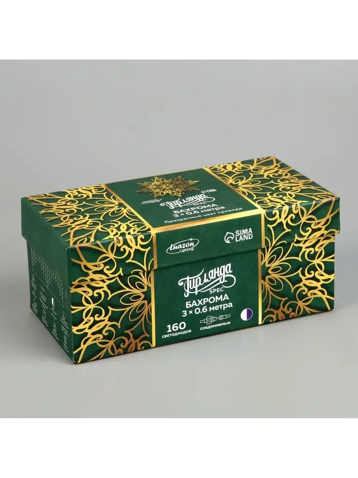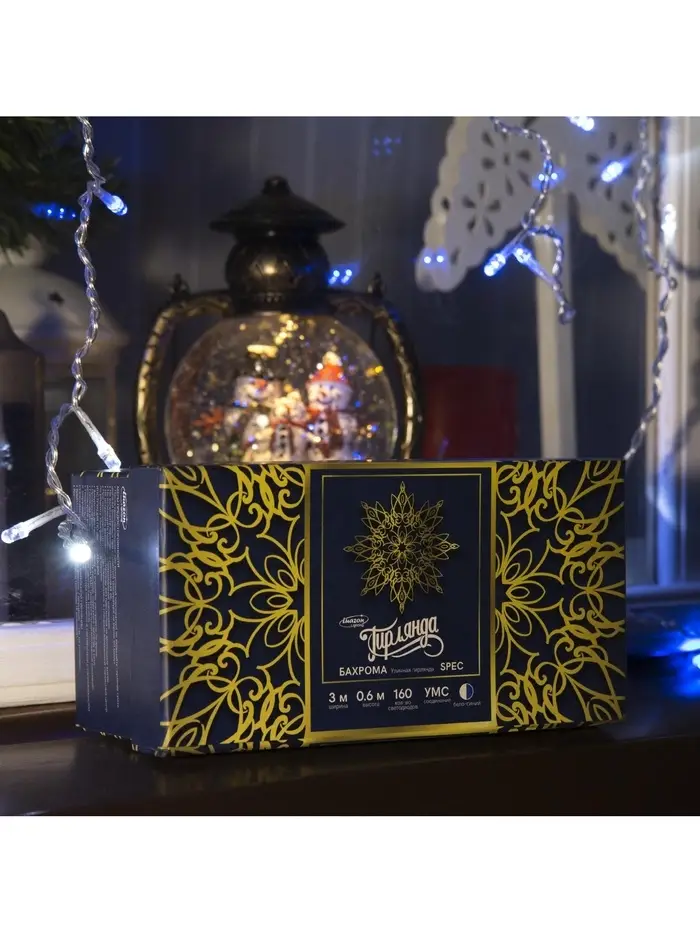 Гирлянда «Бахрома» 3×0.6 м, IP44, УМС, тёмная нить, 160 LED, свечение бело-синее, мигание, 220 В