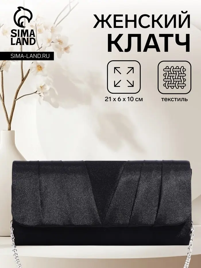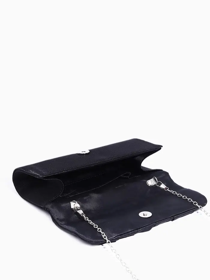 Сумка-клатч вечерняя на магните, на цепочке, чёрная
