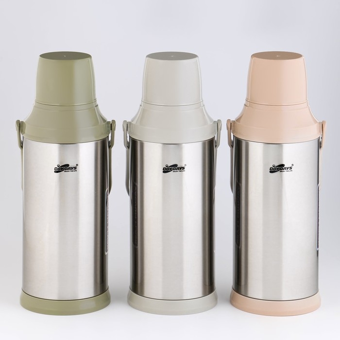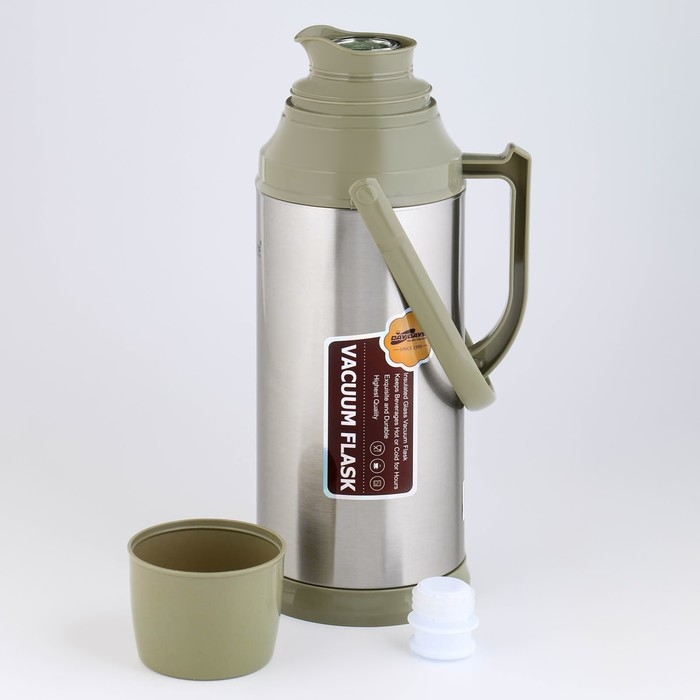 Термос 2 л, со стеклянной колбой, сохраняет тепло 12 ч, с кружкой, микс