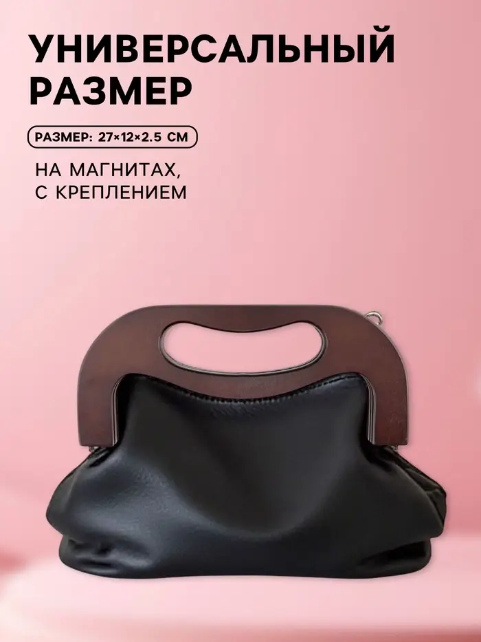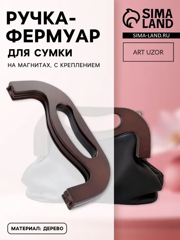 Деревянная ручка-фермуар длиной 27 см выполнена в коричневом цвете и предназначена для украшения и оформления сумок. Благодаря магнитам и креплению, она легко устанавливается и надежно фиксируется, обеспечивая долговечность и удобство использования. Натуральное дерево придает изделию тепло и естественный стиль, подходящий для различных дизайнерских решений.