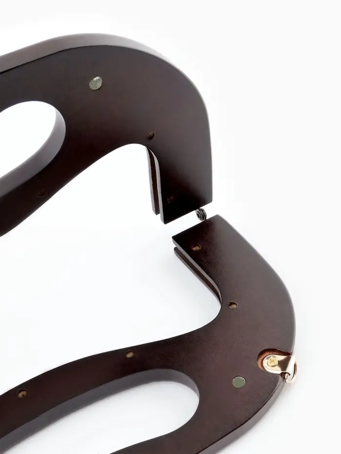Ручка-фермуар для сумки, деревянная, на магнитах, с креплением, 27×12×2.5 см, коричневая