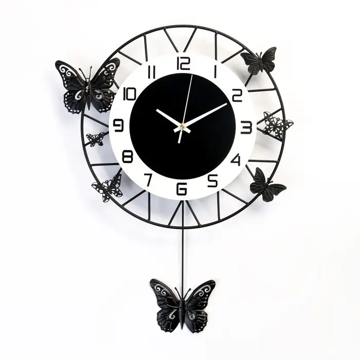 Часы настенные интерьерные «Бабочки», с маятником, плавный ход, 35×51 см