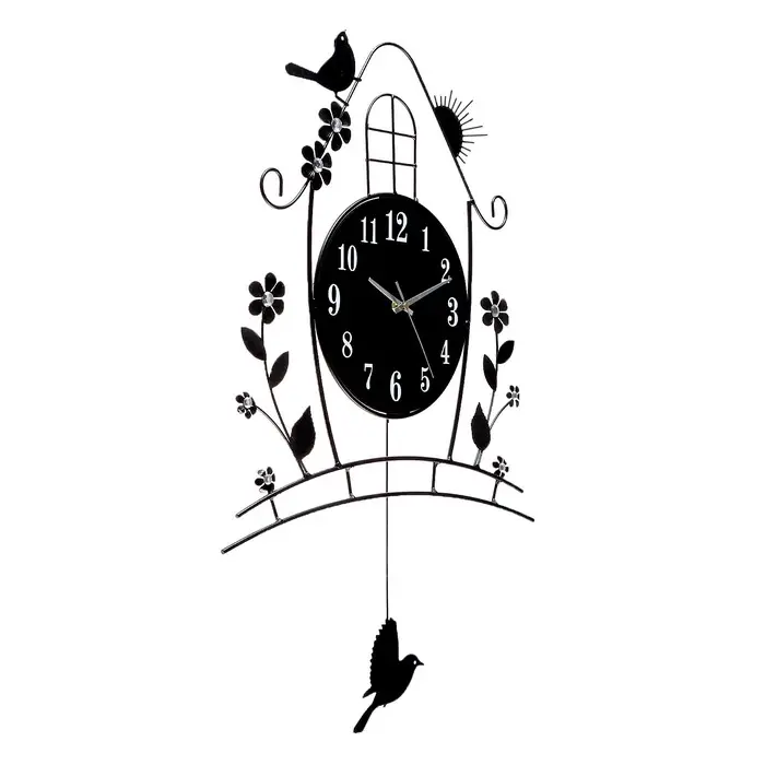 Часы настенные интерьерные, с маятником «Домик», плавный ход, 46×72 см, чёрные