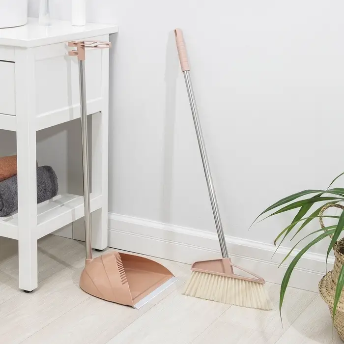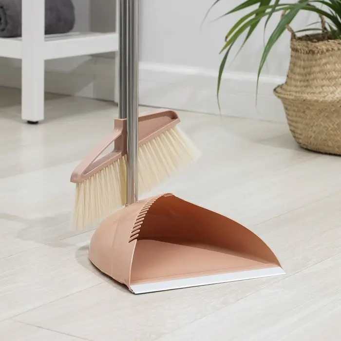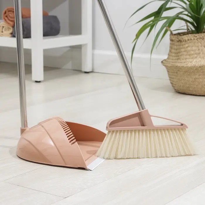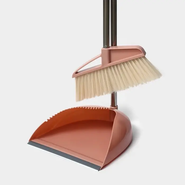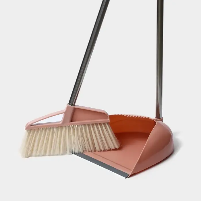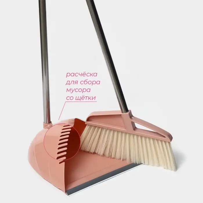 Щётка для пола: совок 24×25×81 см, щётка 24 см, персиковая