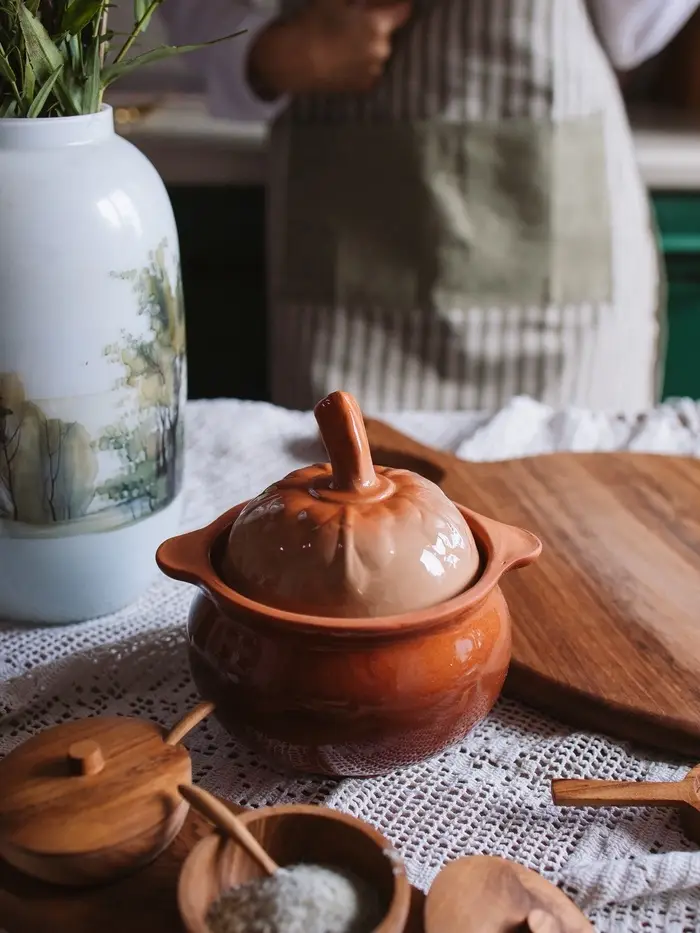Керамический горшочек для запекания — тихий союзник для тех, кто готовит не для показа, а для вкуса. 600 мл — идеальный объём для одной порции запечённых овощей, рыбы, курицы или тушёного картофеля с травами. Оранжевый цвет не яркий, как пламя — он тёплый, как утренний свет на кухне.