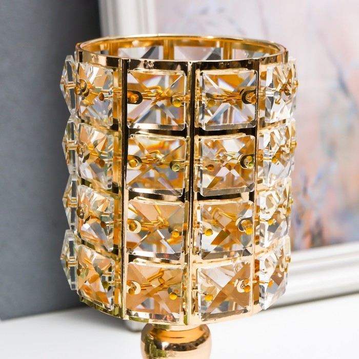Подсвечник металл на 1 свечу "Кристаллы. Бокал" золото 21х11х11 см