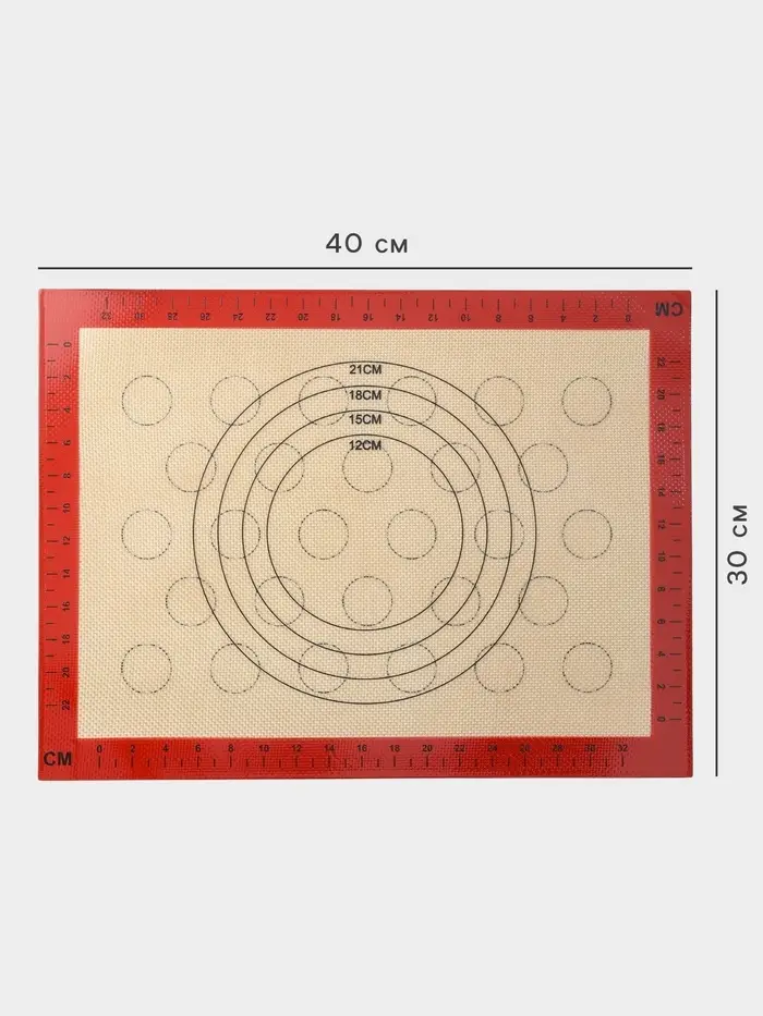 - Легкость в уходе: Коврик легко моется и очищается от остатков теста и других загрязнений (рекомендуется ручная мойка).