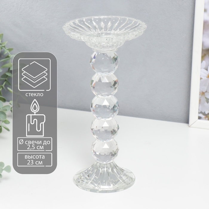 Подсвечник стекло на 1 свечу "Креманка, 5 шаров" прозрачный 23х11,5х11,5 см