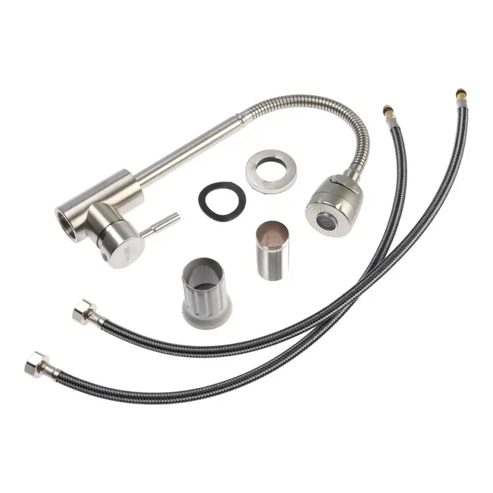 Смеситель для кухни ZEIN Z1752, нержавеющая сталь, с выдвижной лейкой, 2 режима, цвет сатин