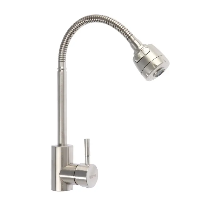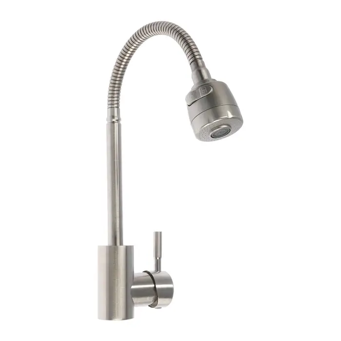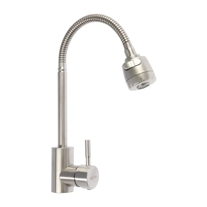 Смеситель для кухни ZEIN Z2390, гибкий излив, картридж керамика 40 мм, нерж. сталь, сатин
