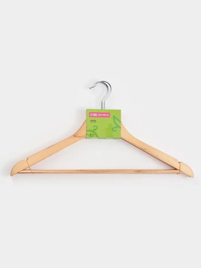 Плечики - вешалки для одежды Доляна, 44.5×23 см, 3 шт., с перекладиной, дерево клён, сорт B, бежевые