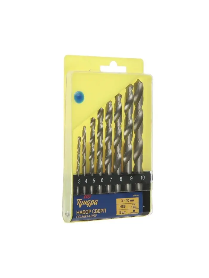 Набор сверл по металлу ТУНДРА, HSS, цилиндрический хвостовик, 3 - 10 мм (через 1 мм), 8 шт.