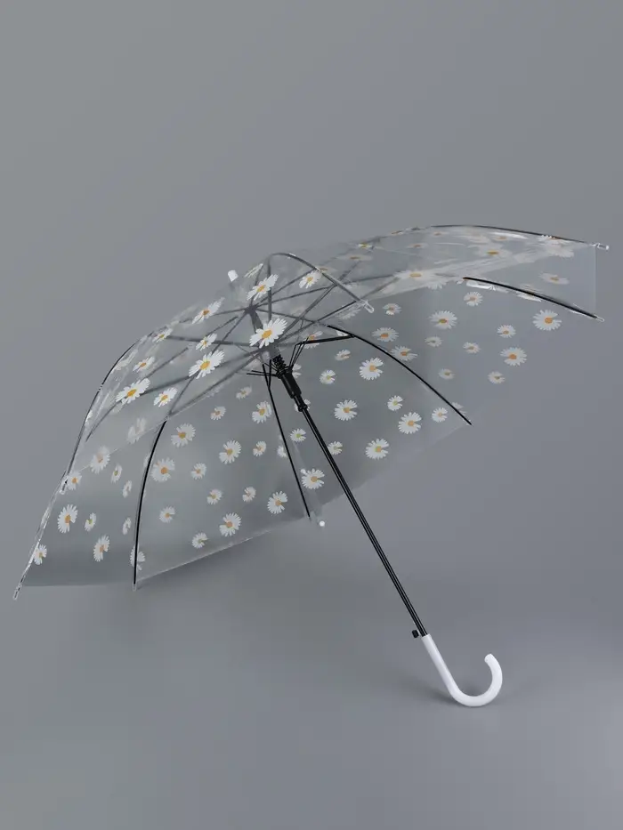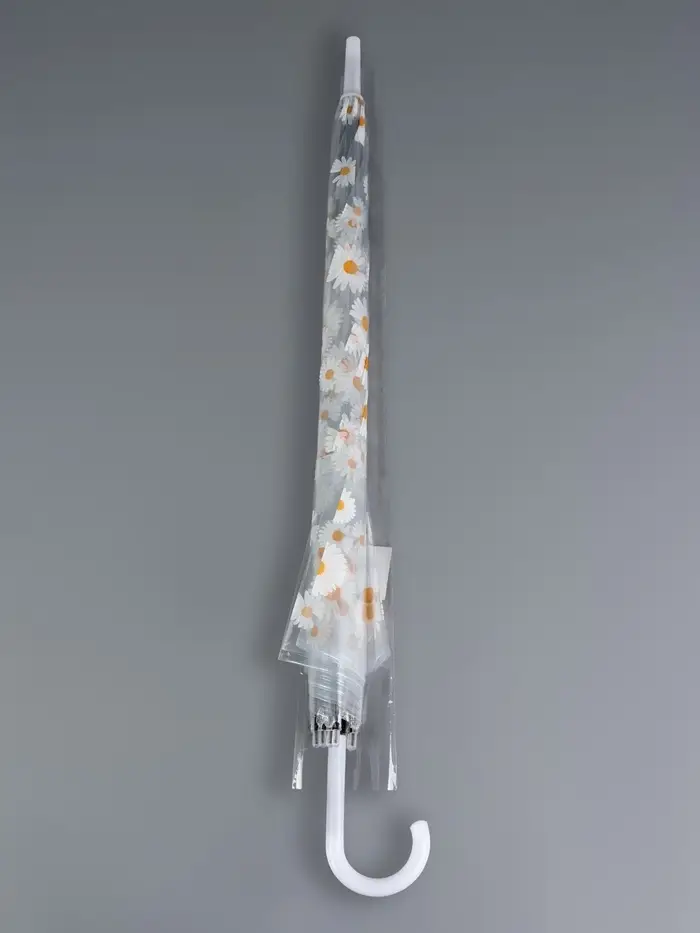 Зонт - трость детский «Ромашка», полуавтоматический, 8 спиц, R=45/55 см, d=90 см, прозрачный