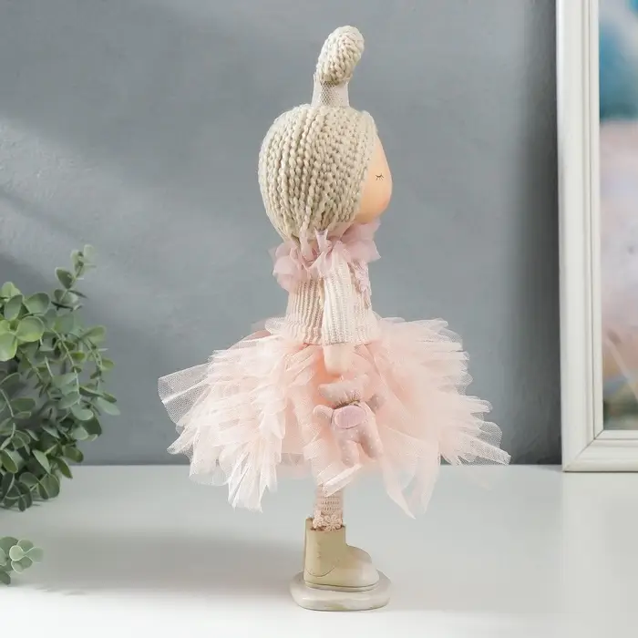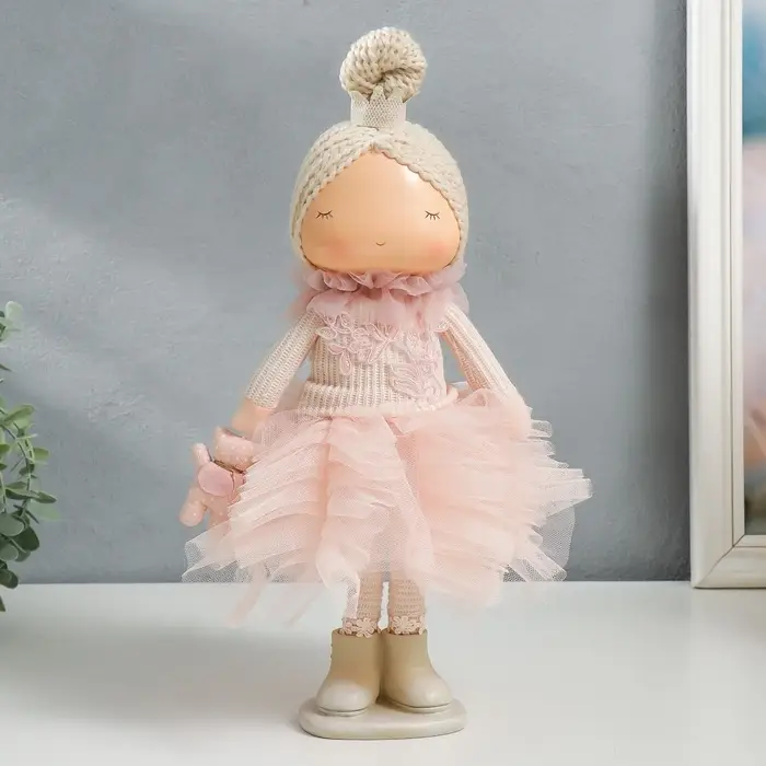 Встречайте волшебную интерьерную текстильную куклу, которая станет настоящей жемчужиной вашего дома — это малышка-принцесса в розовом платье, с милым медведем в руках. Высота 37,5 см делает её идеальной для выставления на полке или в детской комнате, добавляя атмосферу сказки и уюта.
