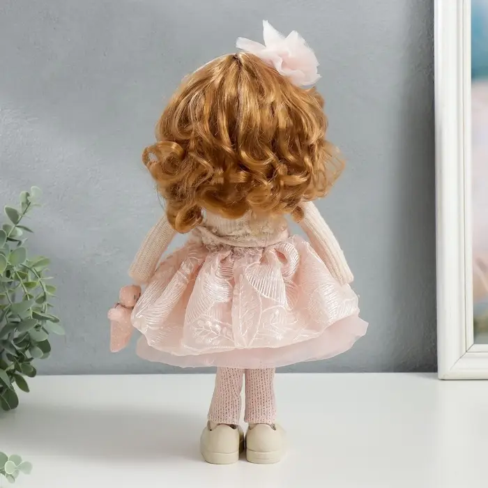 - Современный стиль: наряд в розовых тонах подчеркивает элегантность куклы, а её верный медведь добавляет нотку игривости и уюта.