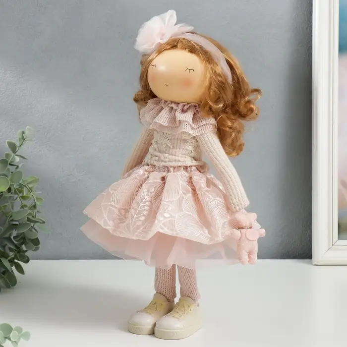 Познакомьтесь с очаровательной интерьерной текстильной куклой, которая станет настоящим украшением вашего дома — это малышка Ася в розовом наряде с милым медведем. Высота 36 см делает её идеальной для экспозиции на полке или в детской комнате, добавляя атмосферу тепла и уюта.